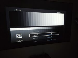 Hay otra característica de la luz que necesitas entender. El bloque óptico no difunde la luz uniformemente, por lo que el centro de la imagen es más brillante que la periferia. He medido una pérdida de luz del 41% entre el centro y el borde. Esto es bastante visible si proyecto una imagen completamente blanca, hay un halo más oscuro alrededor de la imagen. Esto es muy común con este tipo de proyector, es menos notable en un Mogo2Pro